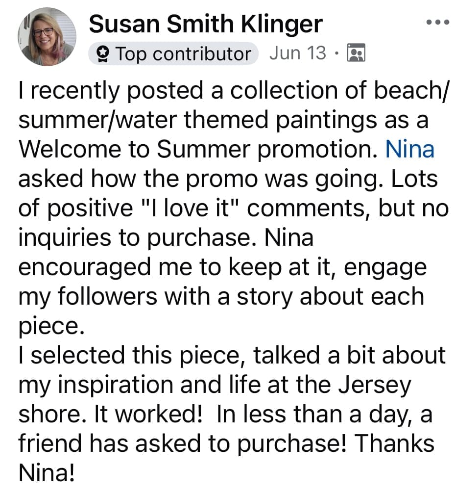 I create a 90 Day Marketing Plan tailored specifically for you and your creative business. This plan will identify key areas for you to focus your efforts to gain immediate results which will allow you to plan for long term goals. I will audit your website and social media accounts and give you recommendations. I will also list action steps for you to take and offer you support through our monthly calls.
